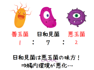 善玉菌:日和見菌:悪玉菌=1:7:2