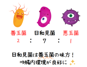 善玉菌が悪玉菌より多い状態では、日和見菌は善玉菌の味方をします。