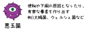 一方、悪玉菌は、便秘や下痢の原因となったり、有害な毒素を作り出す菌です。